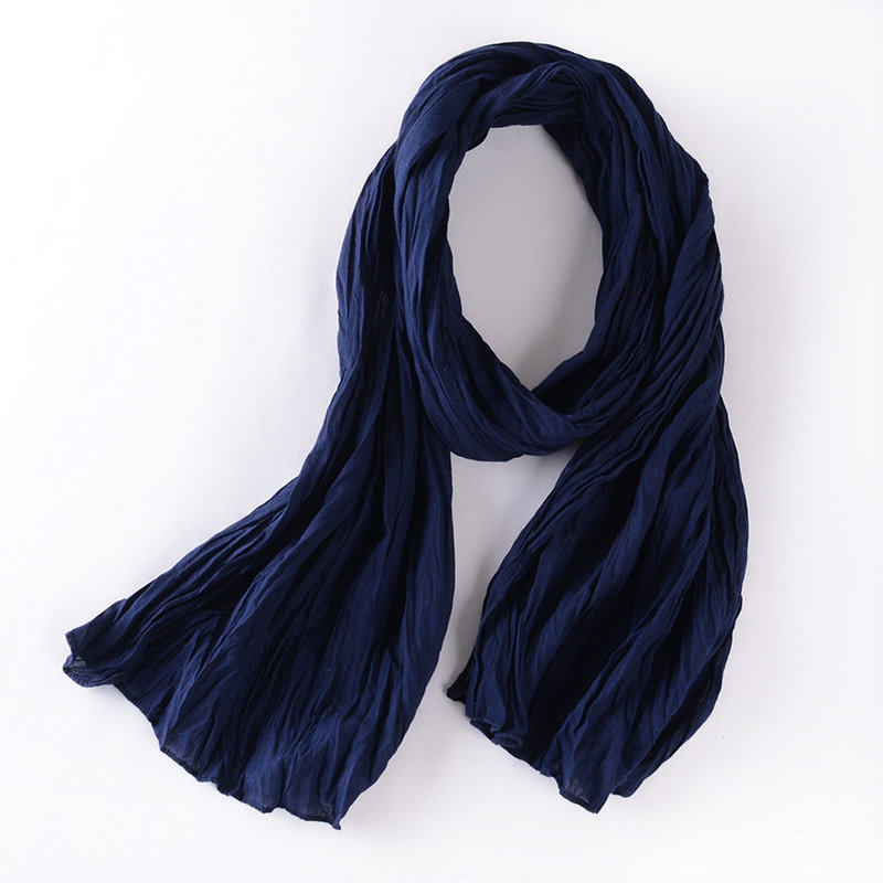 券 2元销量01.5米春夏季纯棉围巾女薄款褶皱全棉细长短款小尺寸围巾棉麻夏天