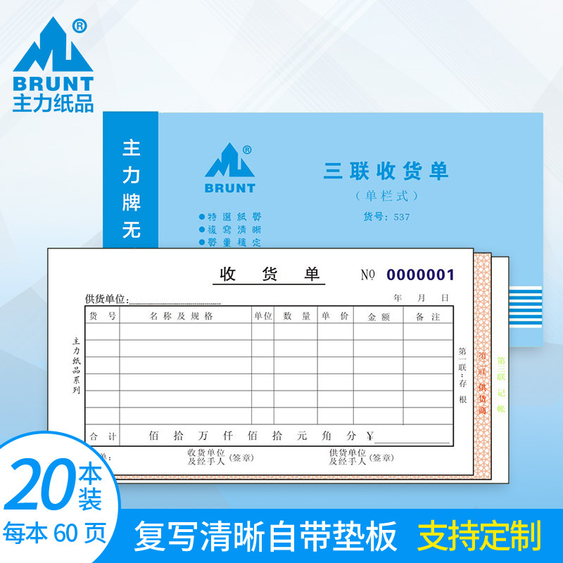 券 2元销量0主力纸品收货单三联单栏48开无碳复写纸自带垫板仓库入库记录单据本财会用品凭证纸印刷定制定做 20本装0537