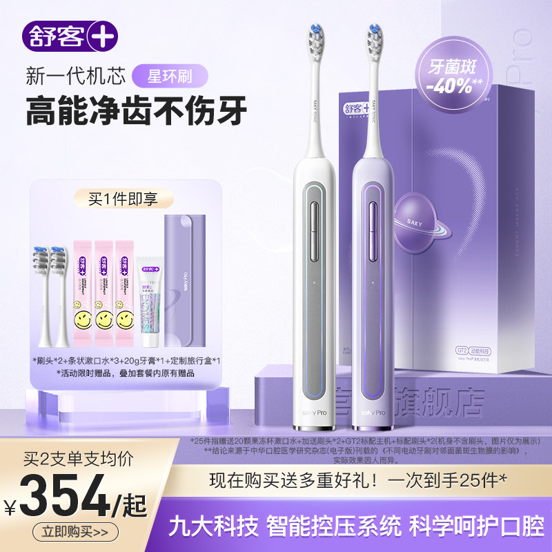 舒客电动牙刷男女声波高端情侣套装全自动美白星环刷GT2