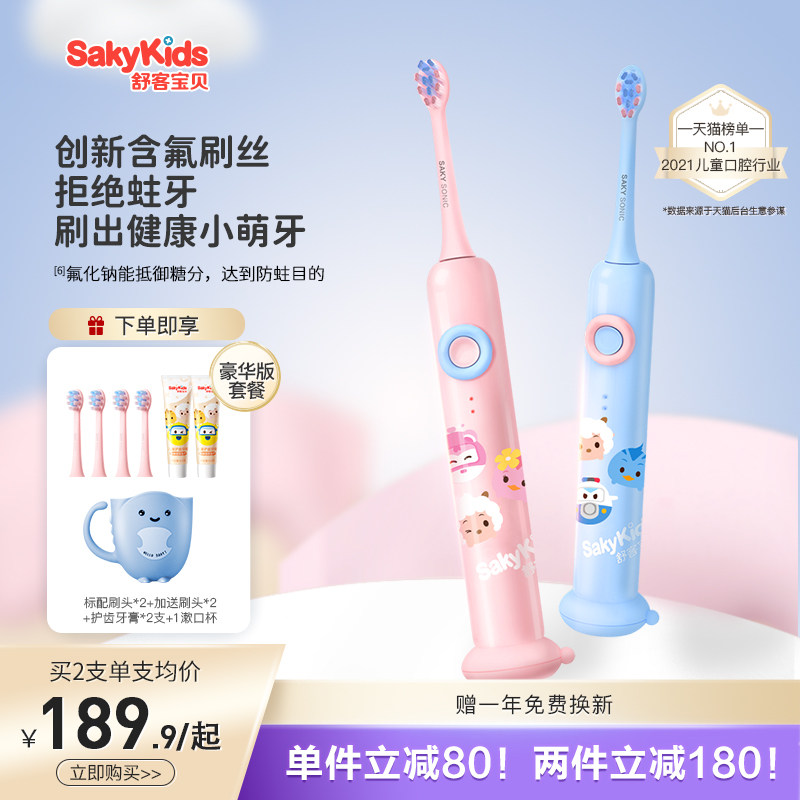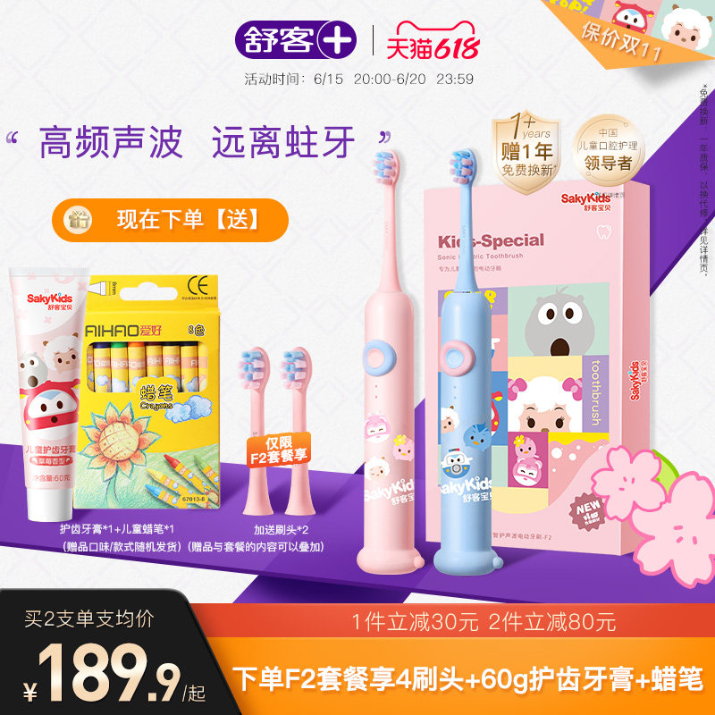券 80元销量1000舒客儿童电动牙刷小孩小学生软毛3-6-12岁刷牙F2舒克全自动