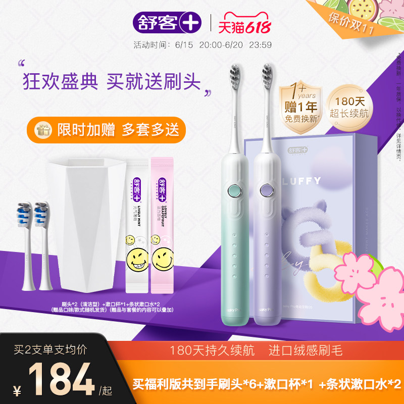券 80元销量1000舒客绒感成人电动牙刷男女情侣套装声波学生自动充电高颜值礼物G5