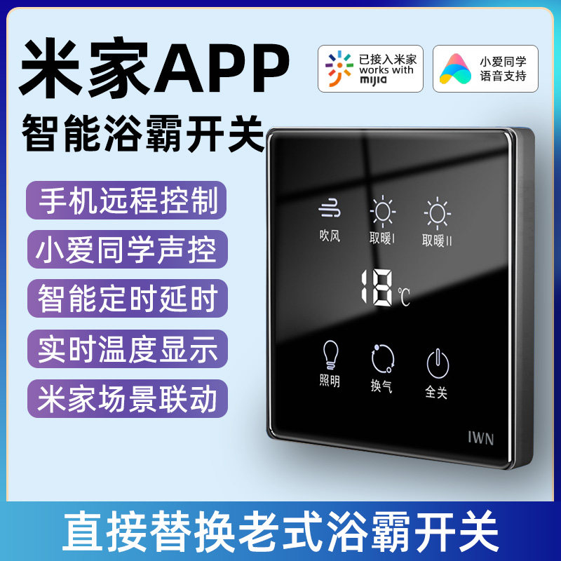 券 20元销量10适用于米家智能浴霸开关五开四开合一卫生间小爱同学触摸屏面板