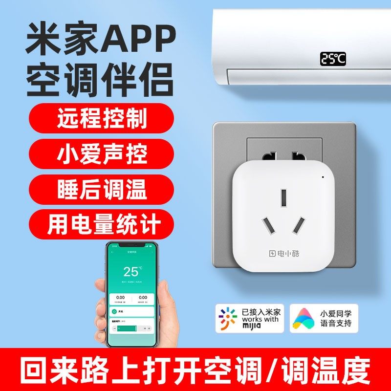 券 10元销量100接入米家空调伴侣无线开关小爱同学语音wifi智能插座电量远程控制