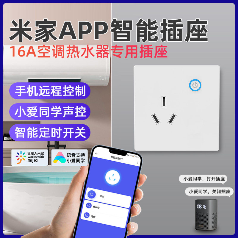 券 5元销量10接入米家WiFi智能墙壁插座16A大功率插头小爱声控开关空调热水器