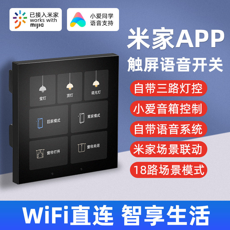 券 14元销量4已接入米家小米iot屏显智能开关控制面板单火wifi小爱无线遥控制