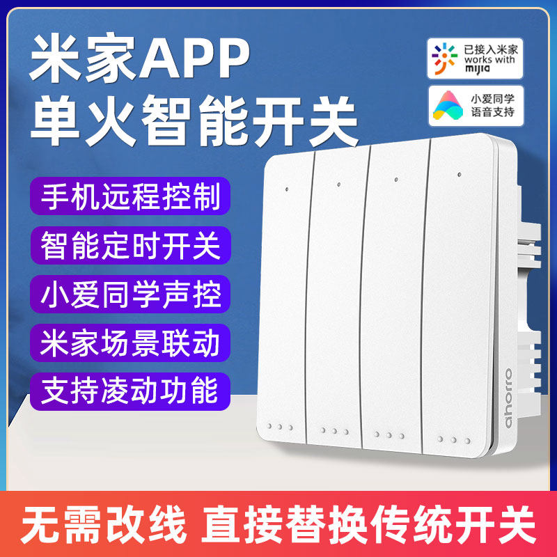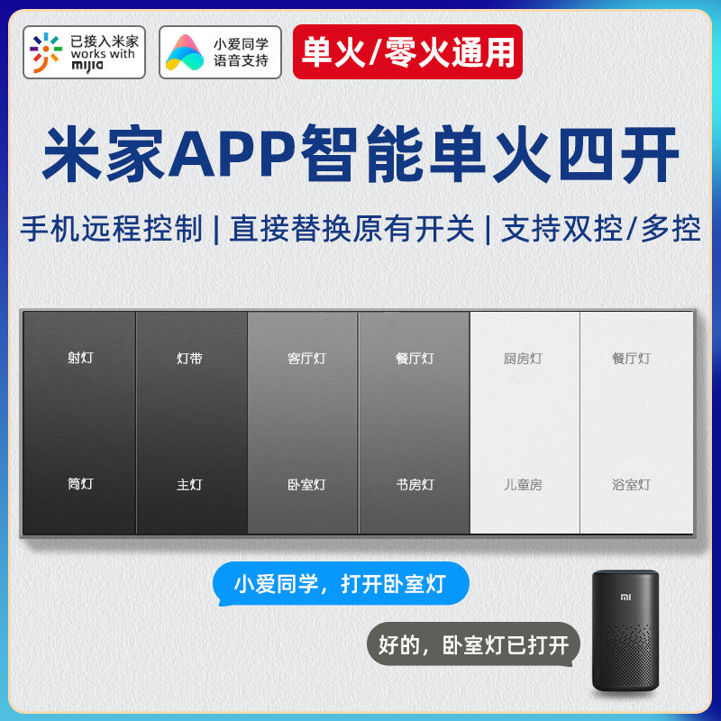 券 10元销量10接入米家智能开关控制面板单火四开蓝牙mesh小爱同学语音声控双控