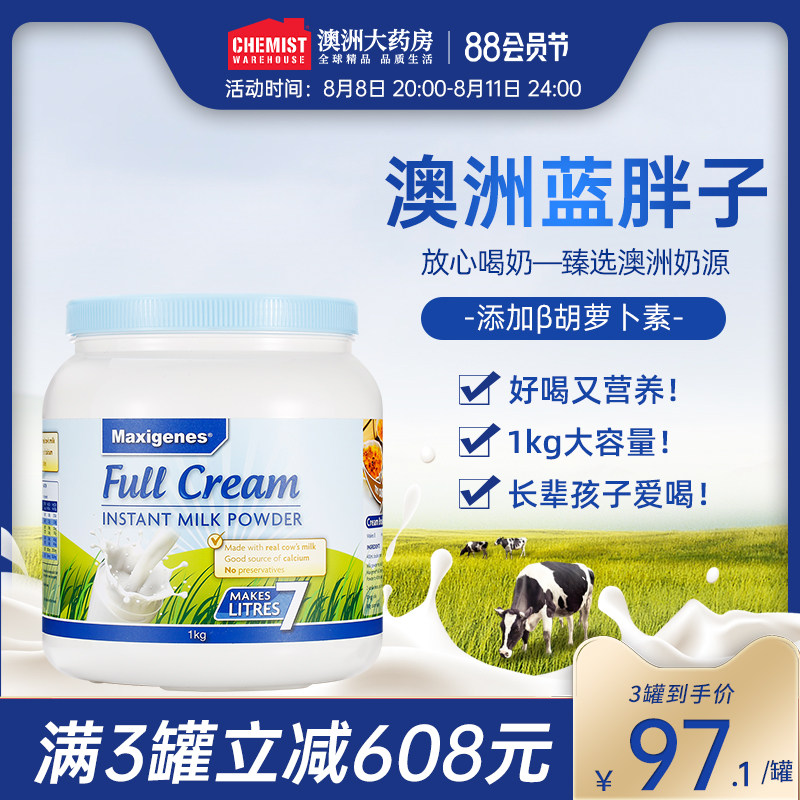 券 12元销量100澳洲进口美可卓蓝胖子全脂脱脂高钙牛奶粉儿童孕妇正品官方旗舰店