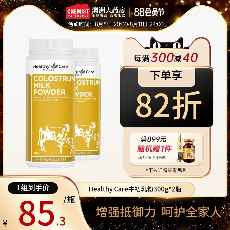 券 15元销量100HealthyCare牛初乳粉300g免疫球蛋白提升免疫力男女通用2瓶澳洲