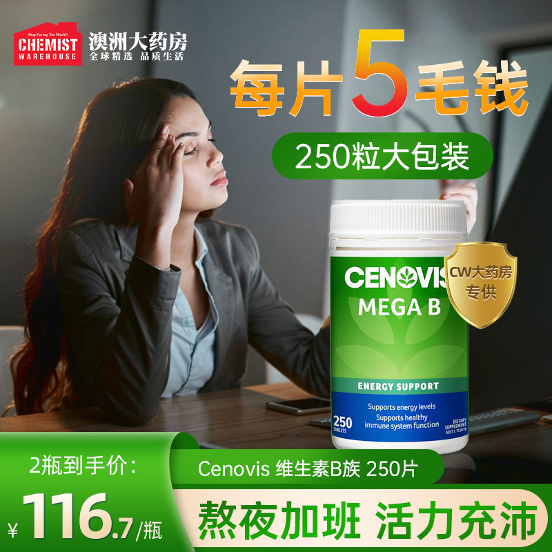 券 15元销量100澳洲Cenovis萃益维B族维生素B250片复合VB维他命维生素cw独售