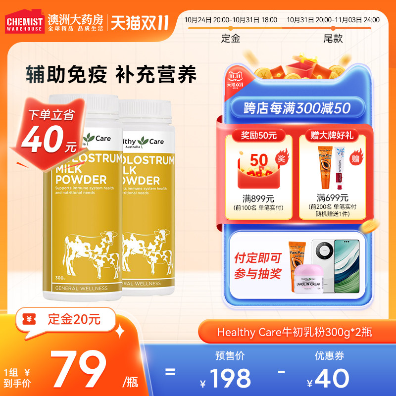 券 190元销量500【双11预售】Healthy Care牛初乳粉免疫球蛋白提升免疫力300g*2瓶
