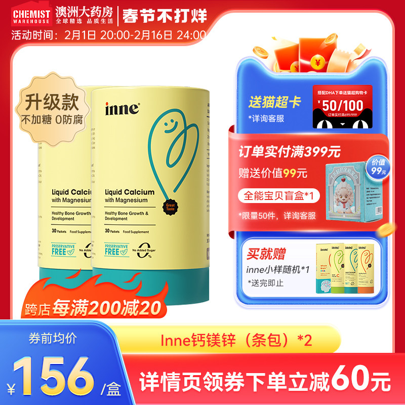 券 15元销量70童年inne 小金条0防腐钙液体钙镁锌钙宝宝补钙婴幼儿童青少年