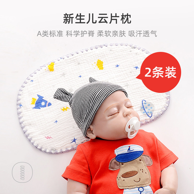券 5元销量100云片枕婴儿枕头夏季透气吸汗新生儿宝宝纯棉纱布枕巾0到3个月平枕