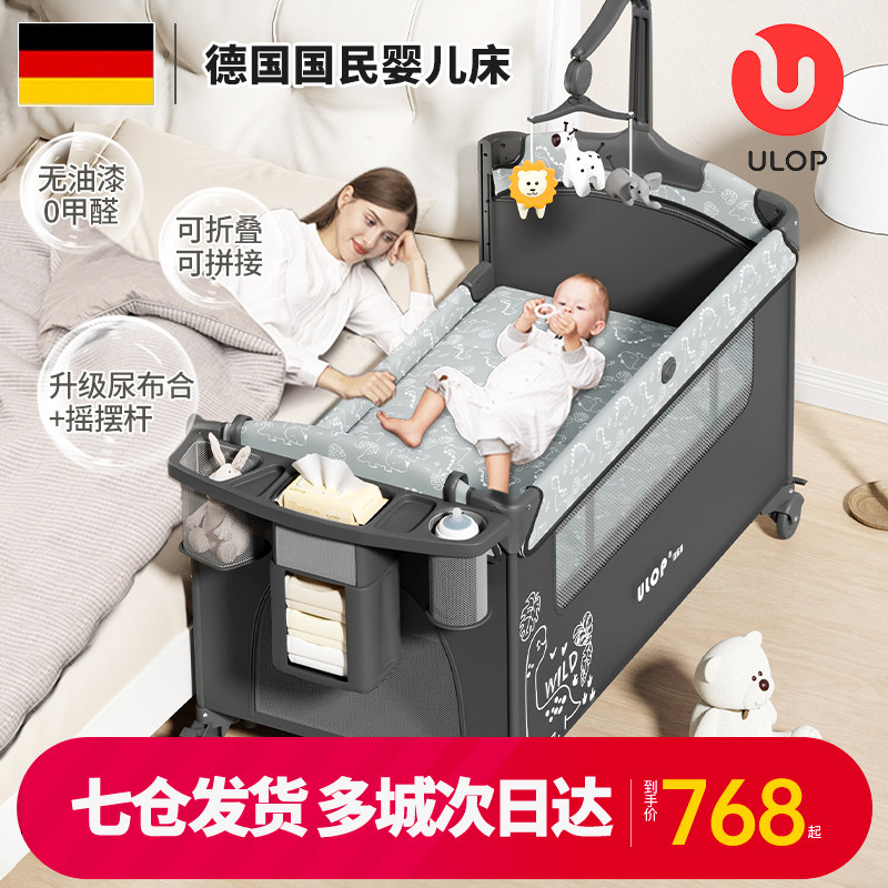 券 180元销量100ULOP优乐博婴儿床可折叠移动拼接大床新生儿尿布台宝宝摇篮床礼物