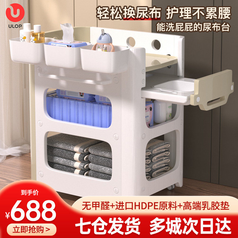 券 300元销量62ULOP优乐博婴儿尿布台宝宝抚触护理台换尿布移动新生儿洗浴婴儿床