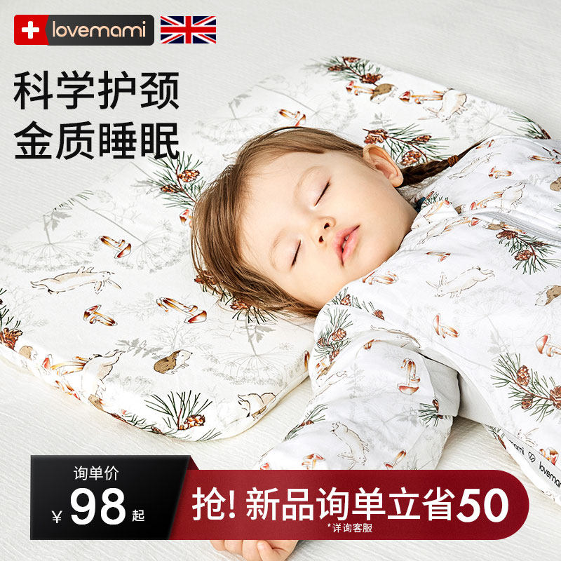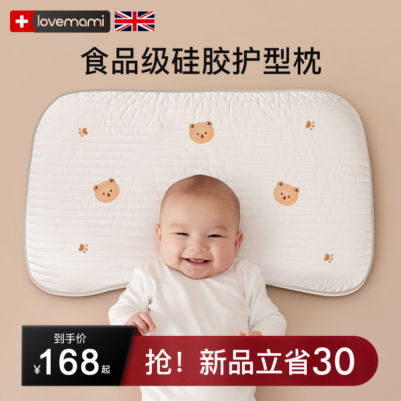 券 50元销量1000英国lovemami婴儿枕头儿童硅胶枕0-1-2-6岁以上幼儿园宝宝四季用