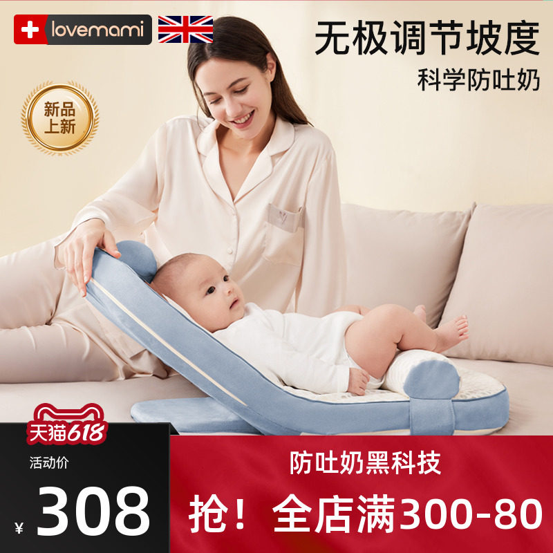 券 10元销量500英国lovemami防吐奶斜坡垫婴儿斜坡枕新生儿护脊防溢奶呛喂奶神器