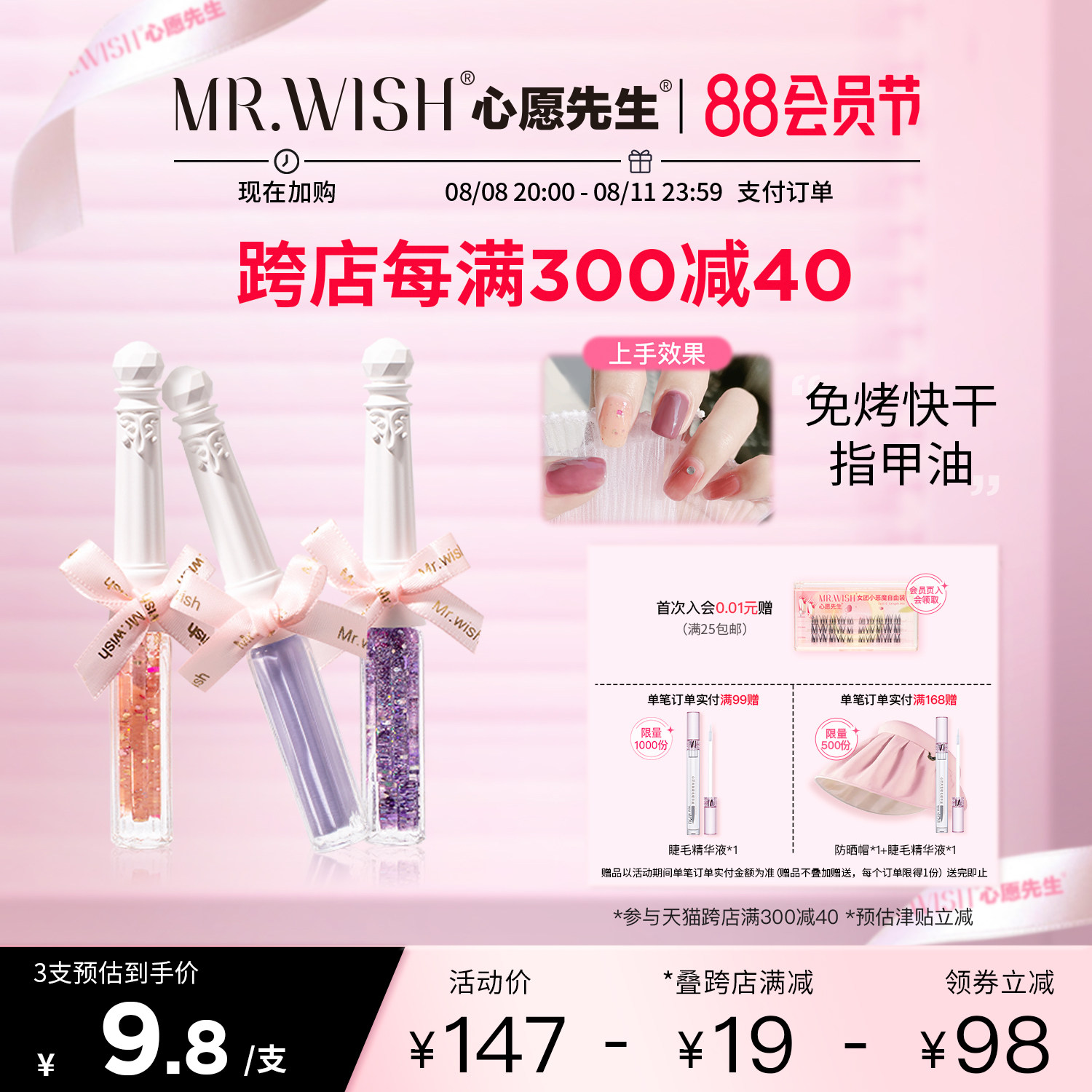 券 20元销量500Mr.wish心愿先生指甲油免烤快干持久不掉色可撕显白日落手脚可用
