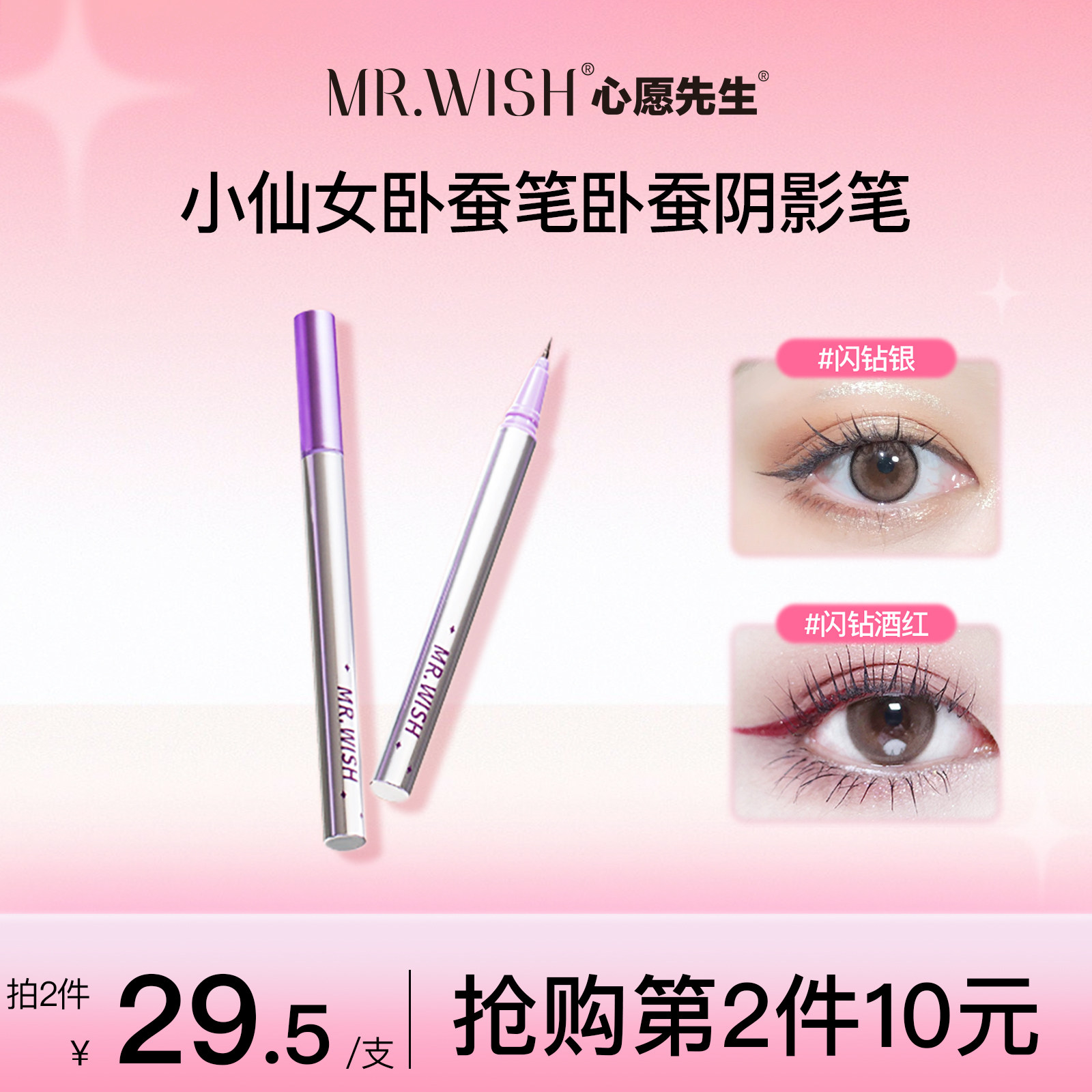 券 10元销量10000Mr.wish/心愿先生眼线笔勾勒自然眼妆防水闪钻银持久不晕染眼线液