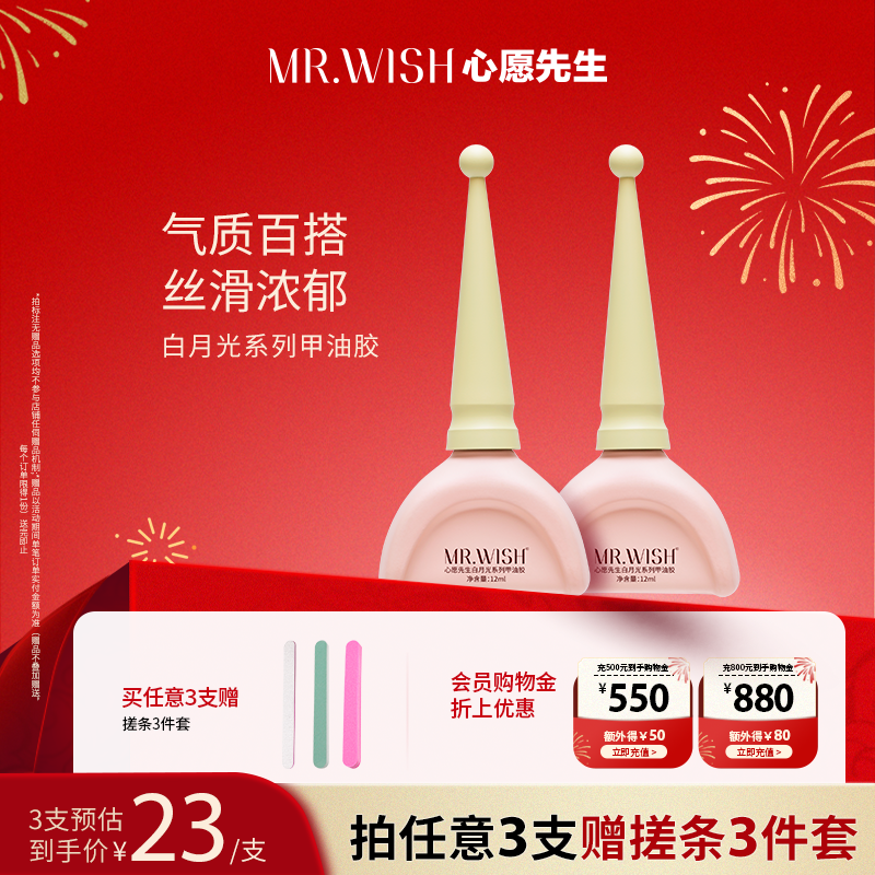 券 10元销量10心愿先生甲油胶2023年新款闪闪淡粉色持久底胶封层指甲油烤灯专用