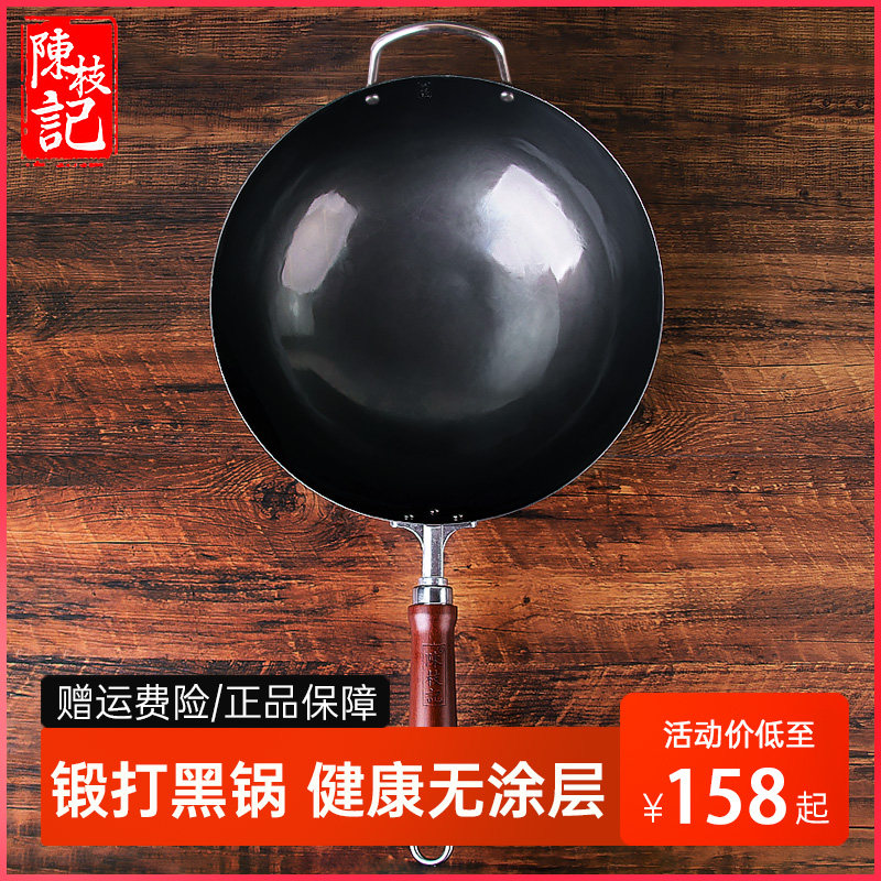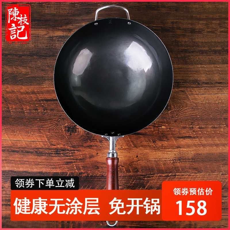 陈枝记熟铁锅炒锅家用炒菜锅无涂层不粘锅燃气灶专用老式圆底开锅