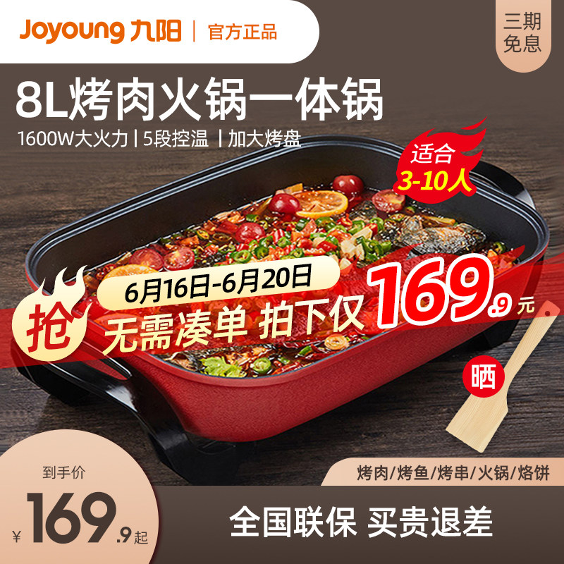 券 97元销量1000九阳电火锅家用锅多功能料理一体式烤肉盘鱼电烤盘电炒锅电热煮锅