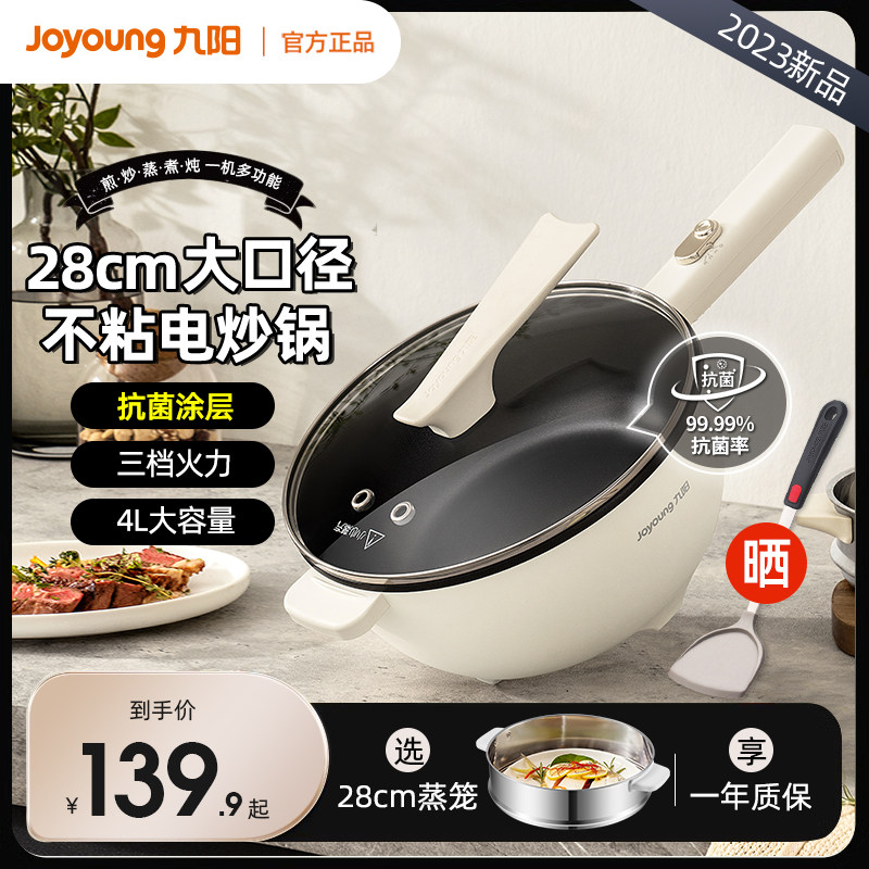 券 10元销量1000九阳电炒锅家用多功能不粘炒菜锅一体式电火锅煎炒蒸电热锅电煮锅