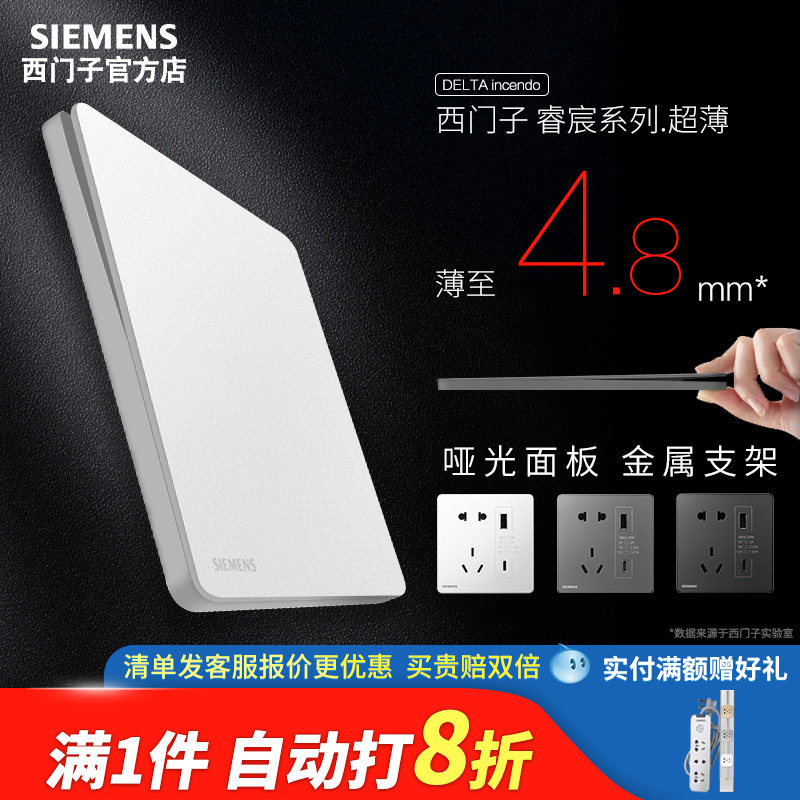 券 2元销量100西门子开关插座面板睿致系列一开五孔带86家用16a空调白色银边usb