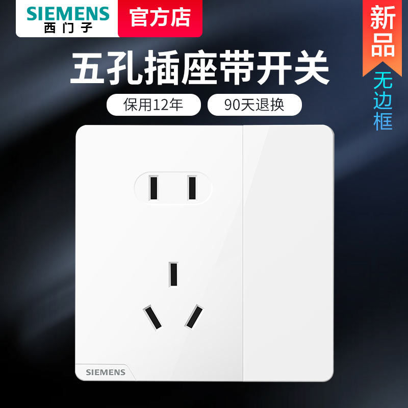 券 1元销量10西门子五孔一开插座带开关控制按钮皓彩雅白色86型单联单控奶油风