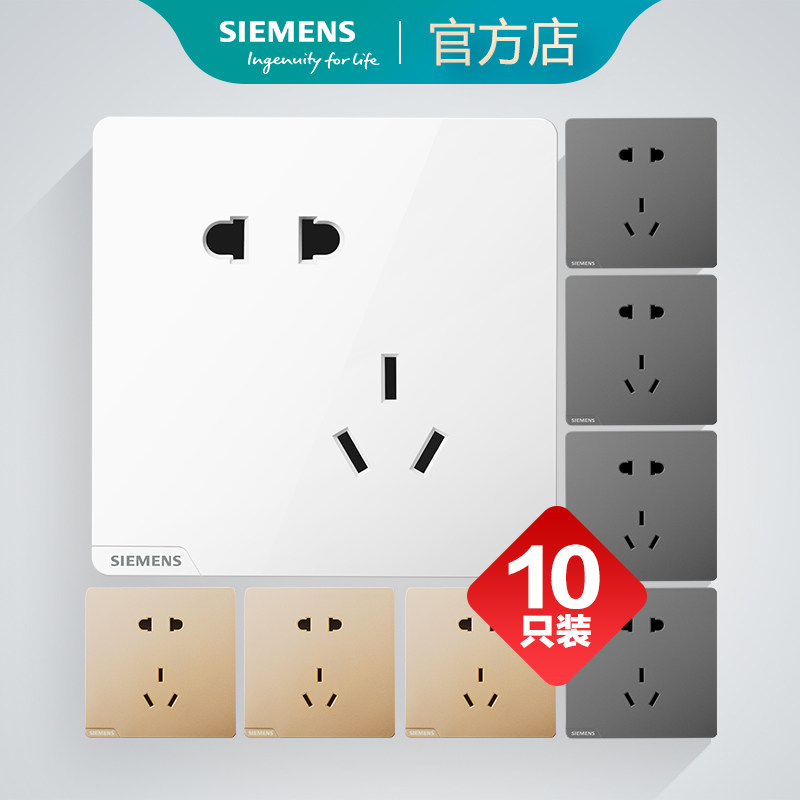 券 1元销量7【直播福利】西门子插座开关皓彩系列五孔10只装面板86型家用电源