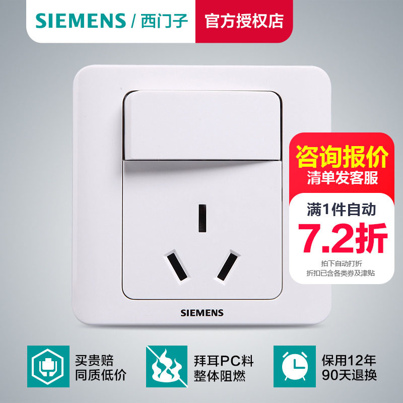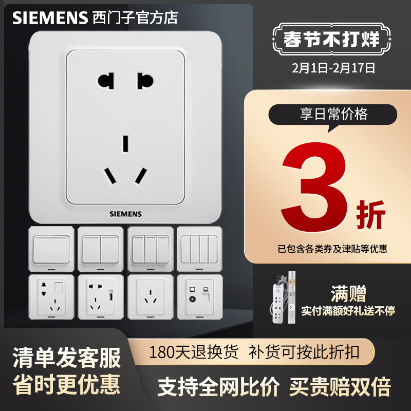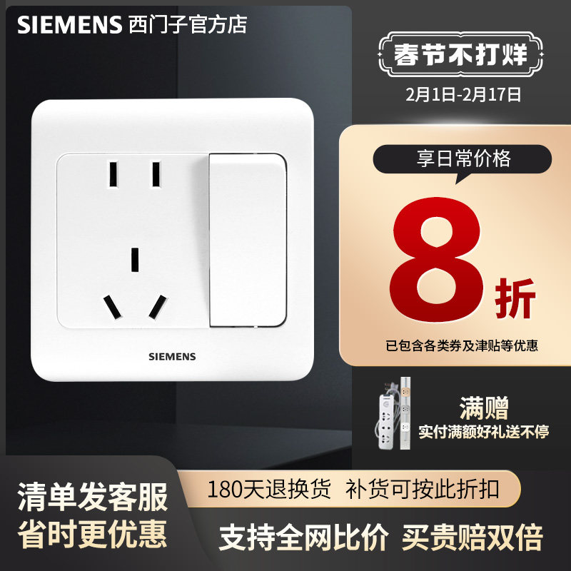 券 2元销量10西门子开关插座 远景雅白插座面板 一开五孔二三插带单控开关防伪