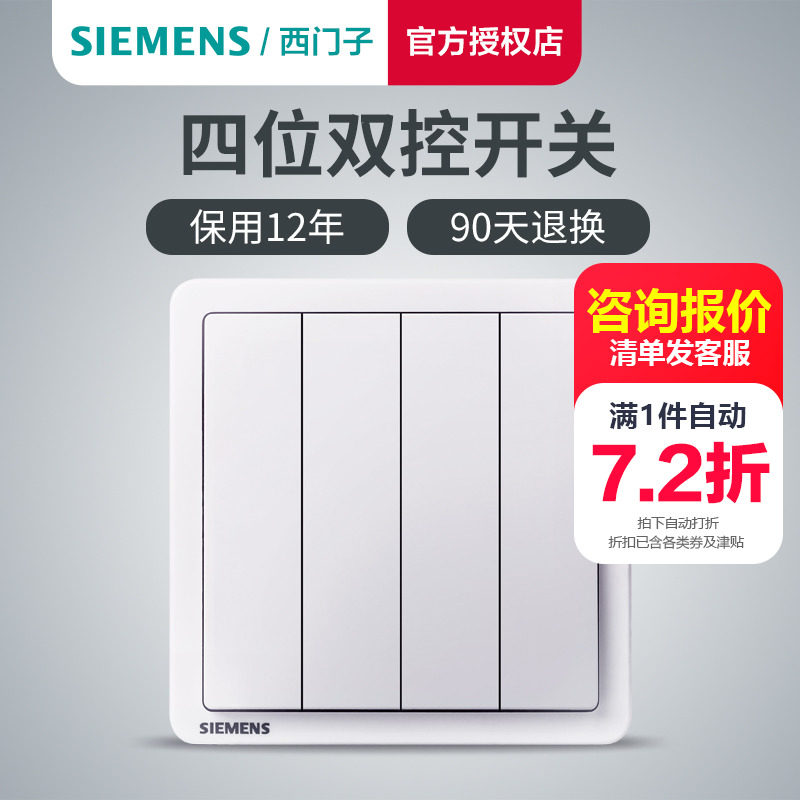 券 1元销量7西门子四开双控开关面板致典系列雅白色86型家用暗装四联二控开关