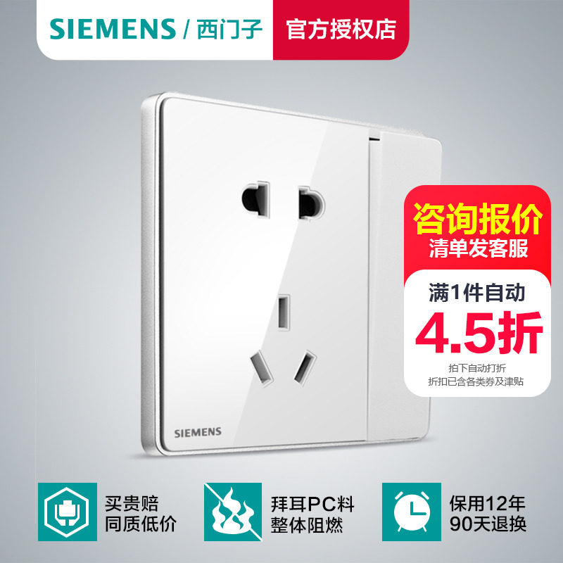 券 2元销量10西门子开关插座面板远景雅白五5孔10a电源墙壁86型二三眼插座家用