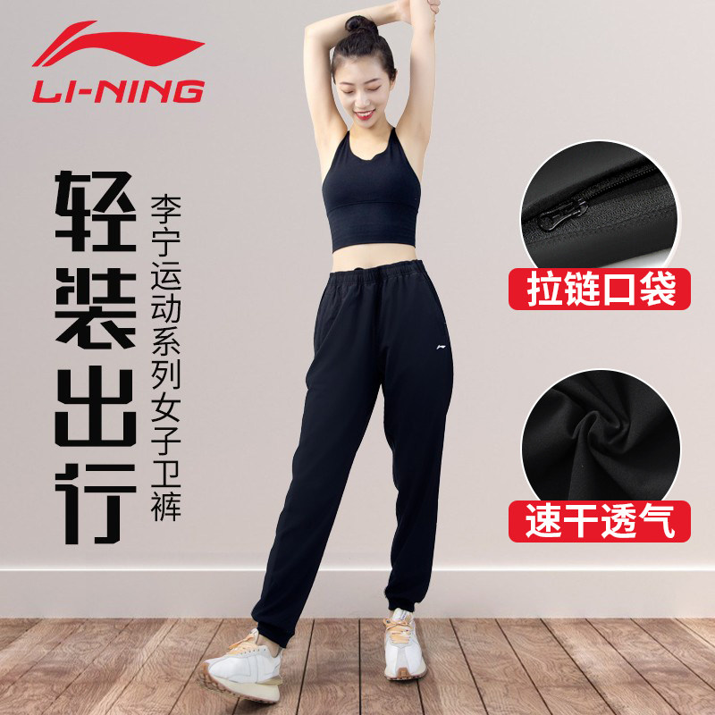 券 3元销量800李宁速干裤女夏薄款裤子宽松束脚运动裤休闲直筒垂感裤黑色ins潮