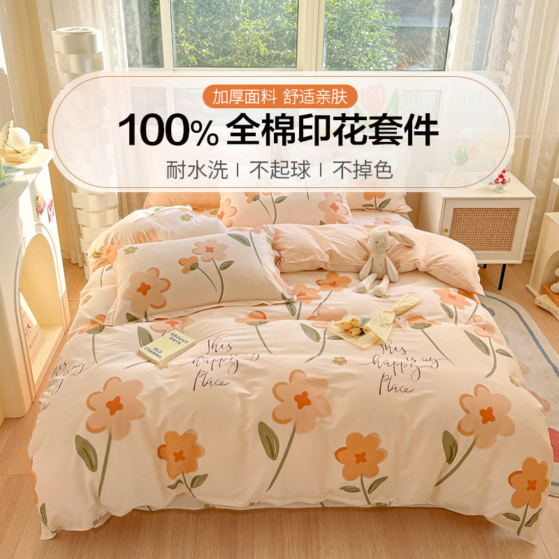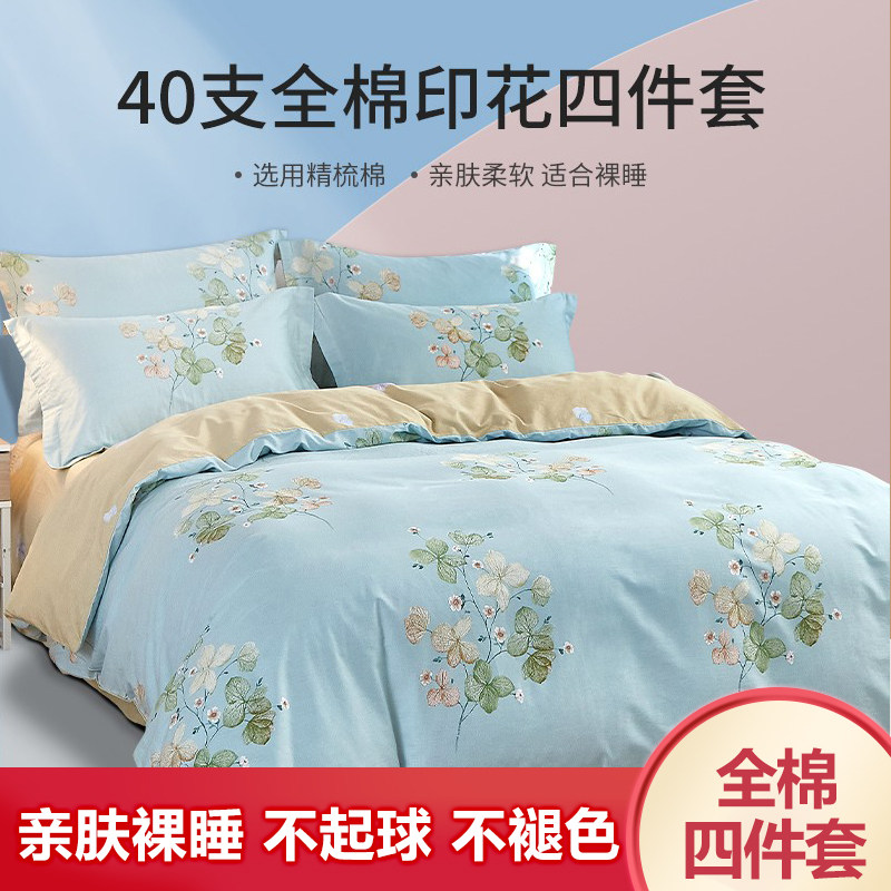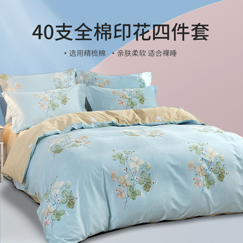 券 100元销量39恒源祥100全棉纯棉四件套花卉被罩床上用品床单被套单人床三件套