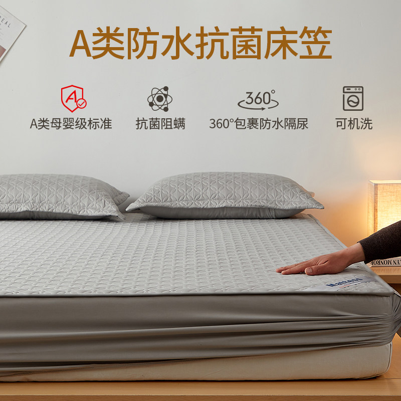 券 60元销量600全棉防滑床笠防水隔尿透气床垫保护罩夹棉席梦思床罩全包防尘床单
