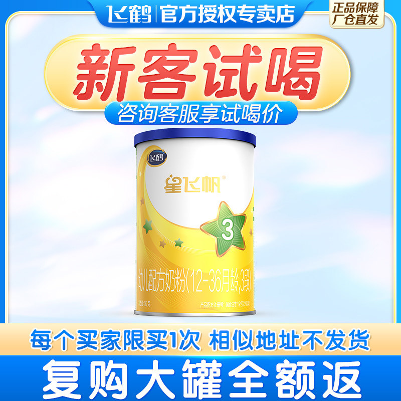 券 30元销量500新客试喝 复购返】飞鹤星飞帆奶粉3段婴幼儿三段130g罐装