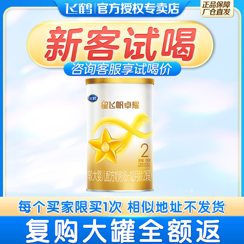 券 30元销量100新客试喝 复购返】飞鹤星飞帆二段奶粉2段婴幼儿130g罐装