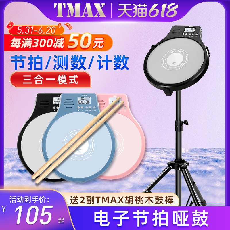 券 10元销量11TMAX12寸哑鼓垫节拍器套装儿童初学架子鼓练习器双面专业打击鼓板