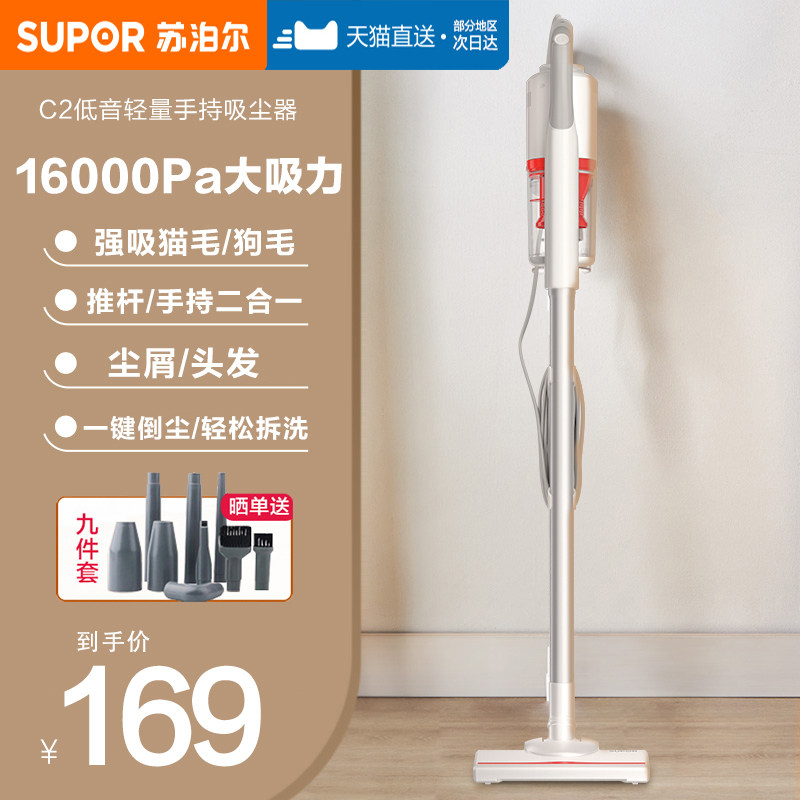 券 100元销量22苏泊尔吸尘器家用小型大吸力手持有线地毯除尘多吸头轻量随手吸C2