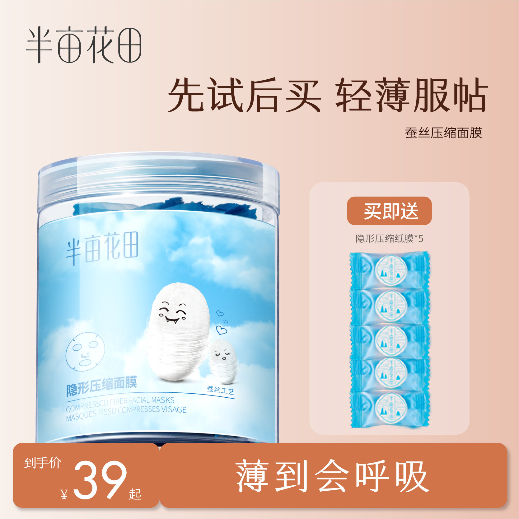 券 3元销量50半亩花田隐形压缩面膜纸蚕丝工艺薄补水一次性diy鬼脸纸膜50粒