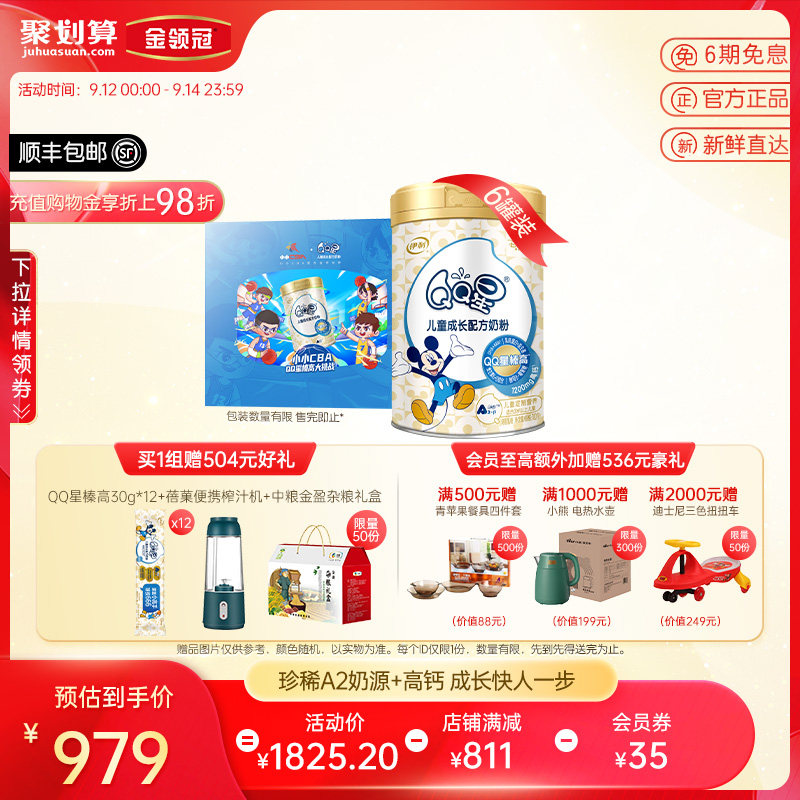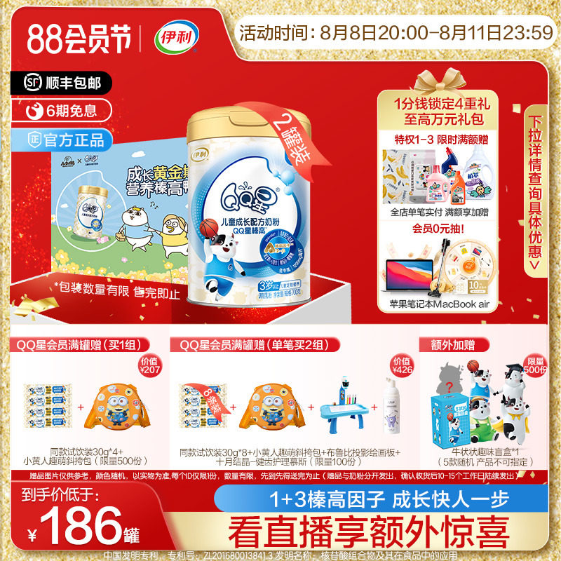 券 200元销量600伊利QQ星榛高4段3-12岁儿童成长高钙营养配方牛奶粉700g*6罐