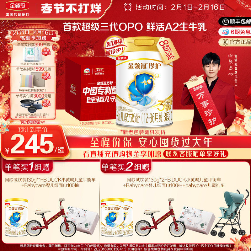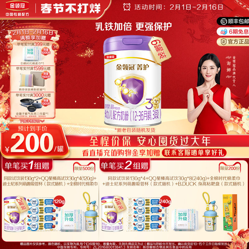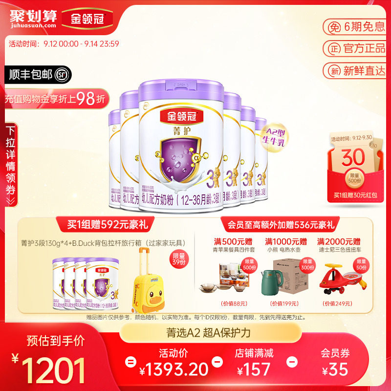 券 121元销量400【春节不打烊】伊利金领冠菁护3段婴幼儿A2配方牛奶粉800g*6罐