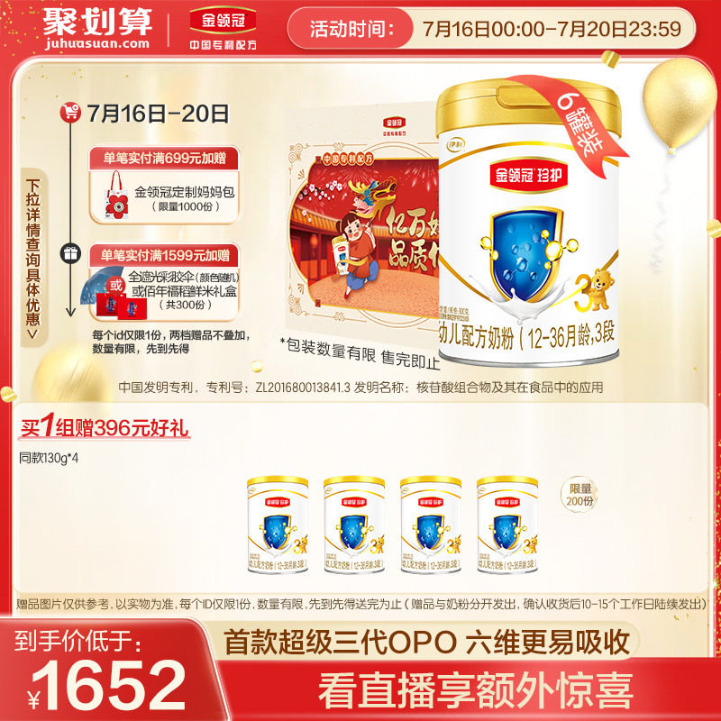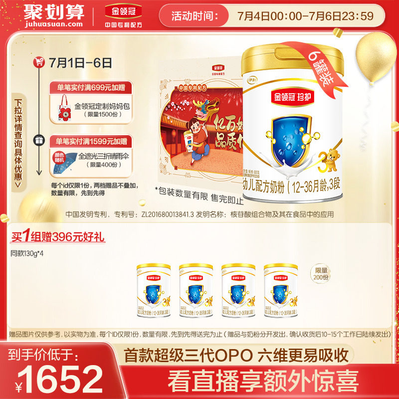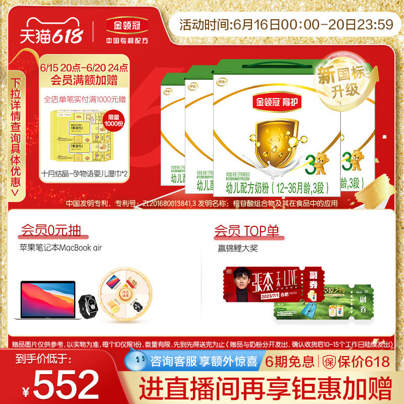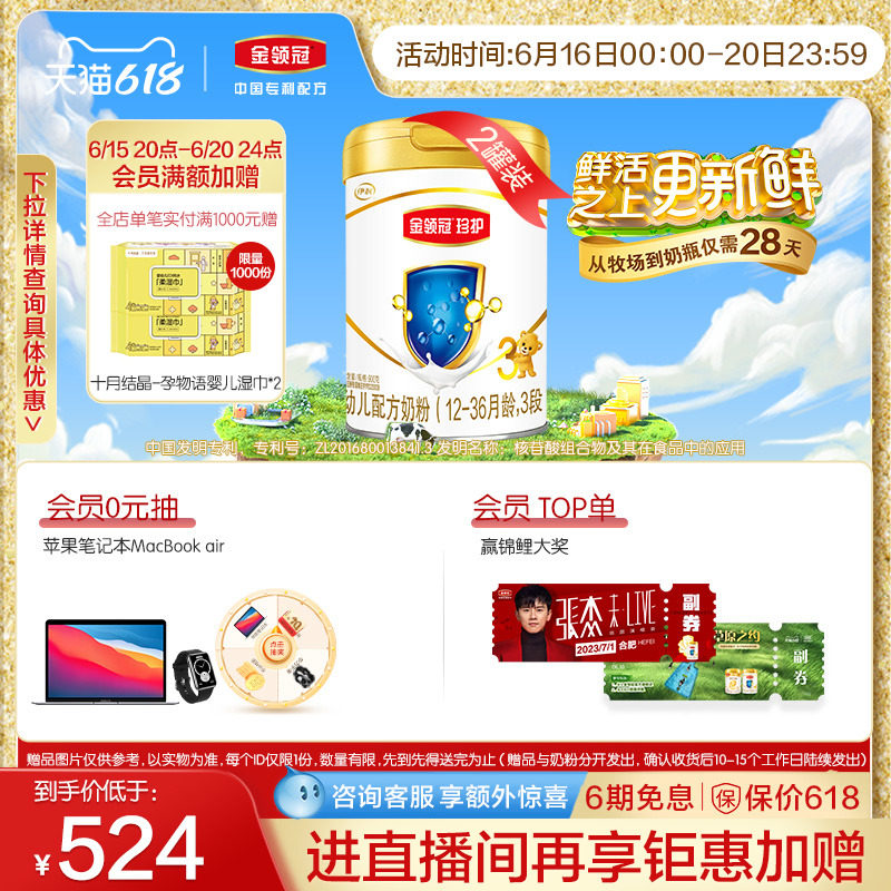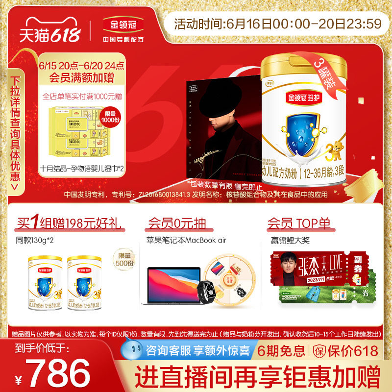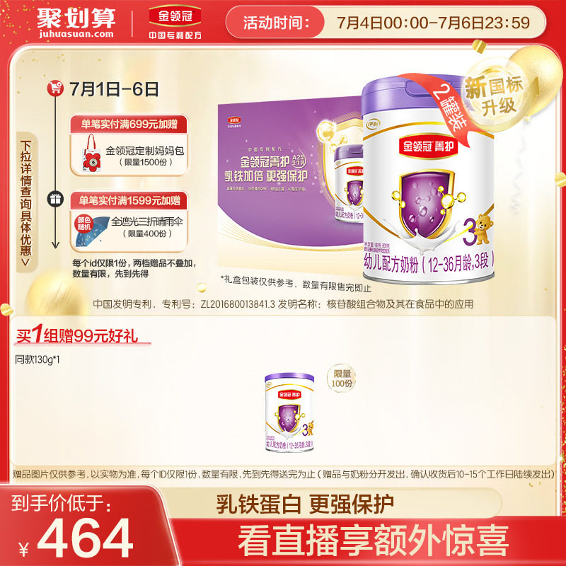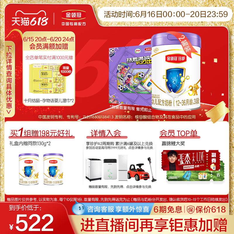 券 472元销量85【新国标】伊利金领冠珍护3段12-36个月幼儿配方奶粉900g*6罐