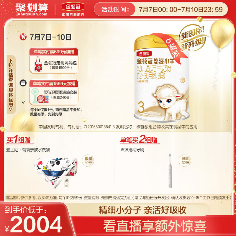 券 200元销量100【新国标】伊利金领冠悠滋小羊3段配方羊奶粉700g*6罐