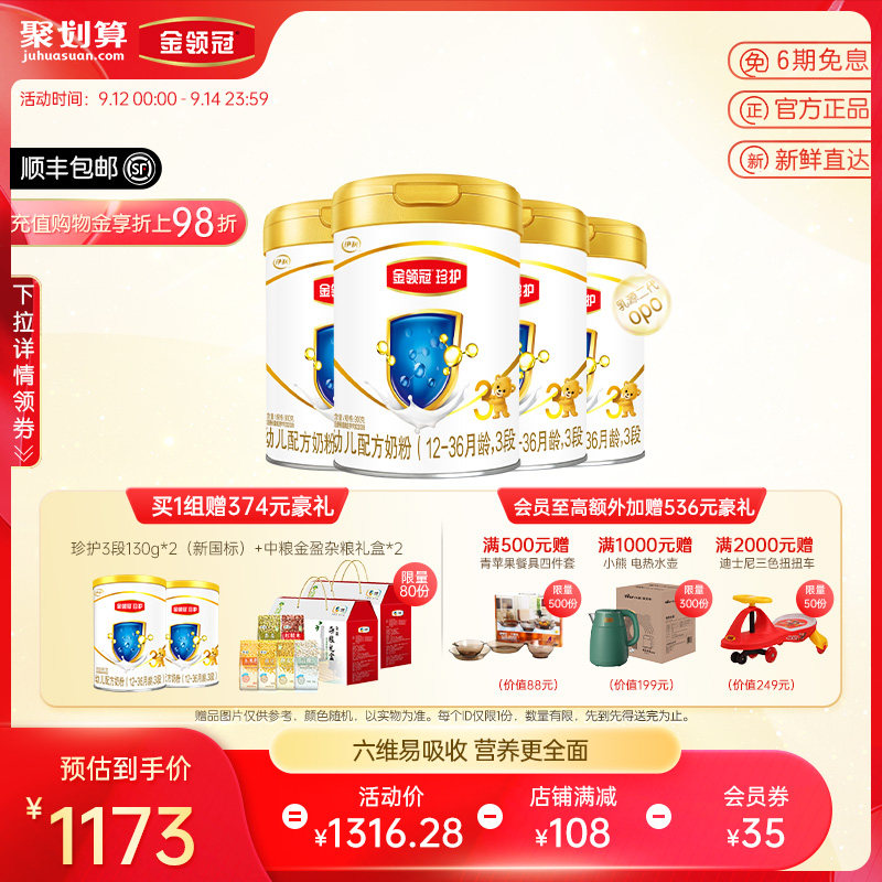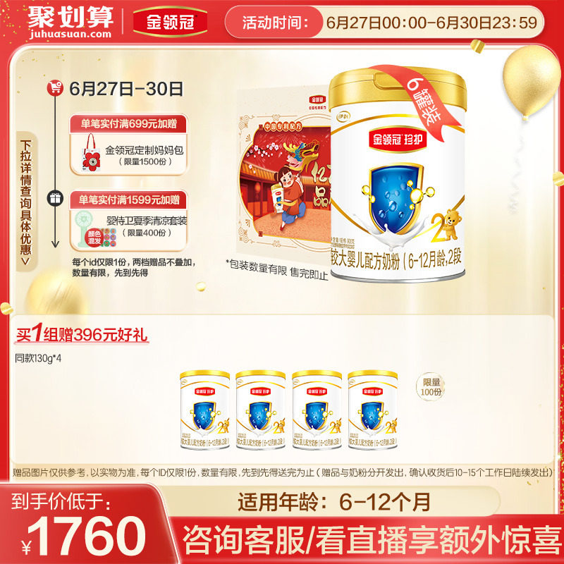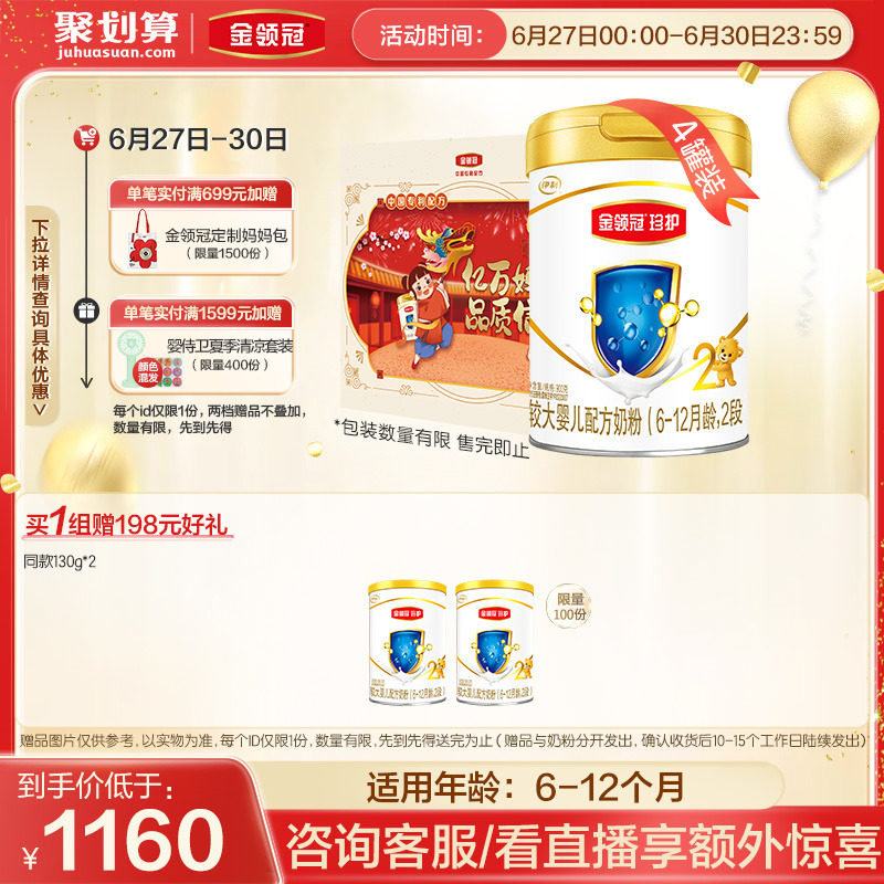 券 98元销量100【新国标】伊利金领冠珍护2段6-12月较大婴幼儿配方牛奶粉900g*4