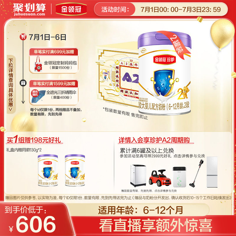 券 296元销量700伊利金领冠珍护A2奶粉2段6-12个月婴幼儿配方牛奶粉808g*2罐