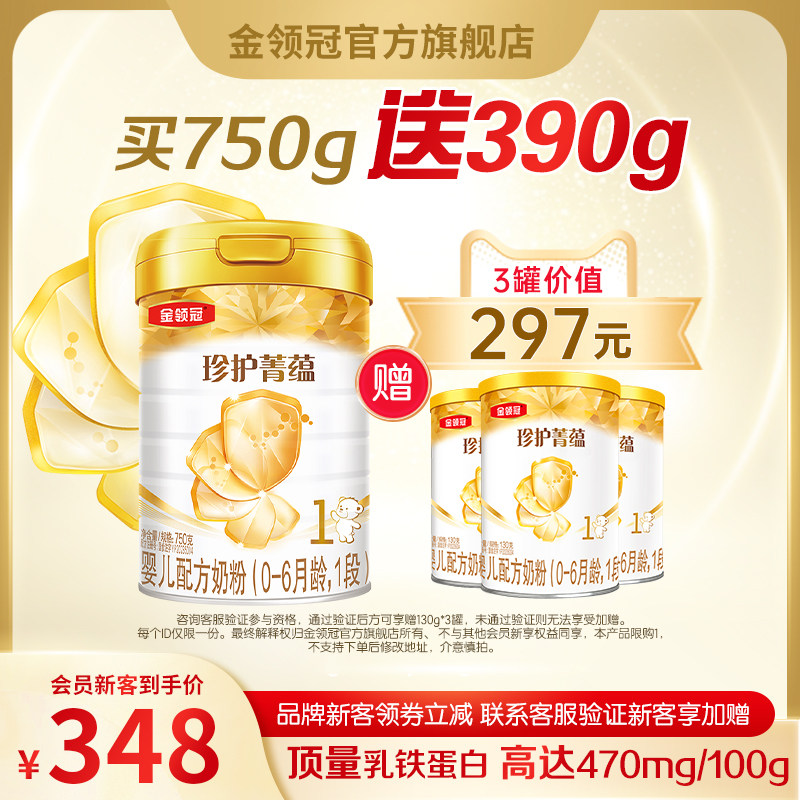 券 126元销量100【新国标】伊利金领冠珍护1段0-6个月新生宝宝婴幼儿牛奶粉900g