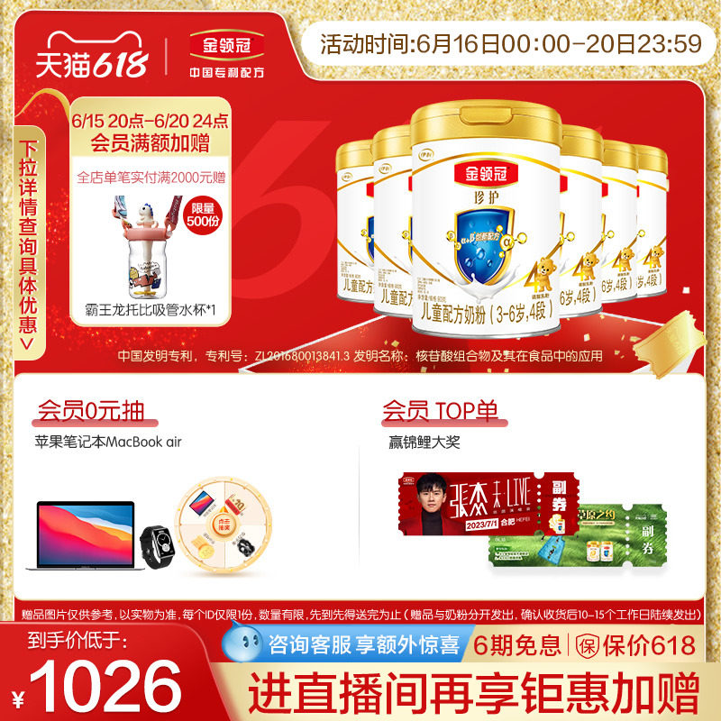 券 126元销量100伊利金领冠珍护4段3-6岁儿童配方牛奶粉900g*6罐