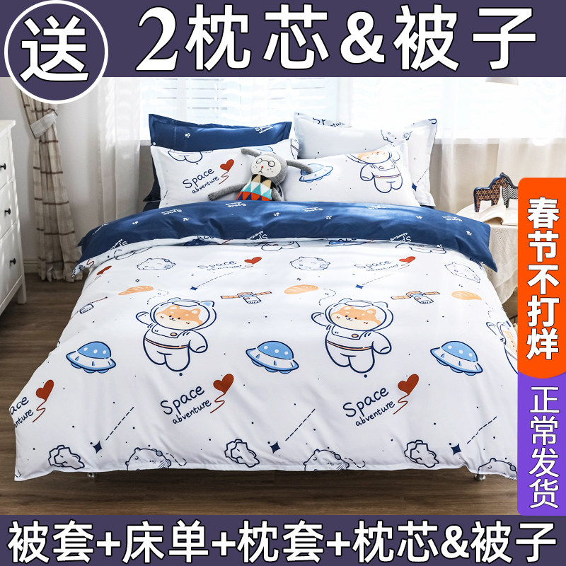券 5元销量16水洗棉被子四件套床上用品夏季学生宿舍春秋被罩被套床单人三件套