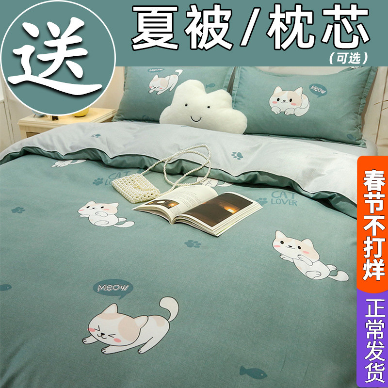 券 10元销量50四件套纯水洗棉全床单被套罩学生宿舍单人ins床上用品4三件套被子